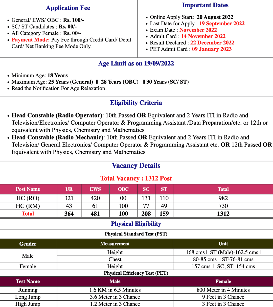 Border Security Force (BSF)BSF Head Constable RO / RM PET Admit Card 2023 |